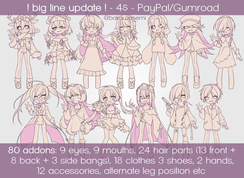 What it says on the tin. I can do them on any of the bases I linked above, and mash them together to create a new or updated refsheet for your OC.Any of the extras can be added to front or front+back only refs.Full back views are only applicable to bases that have them included.
