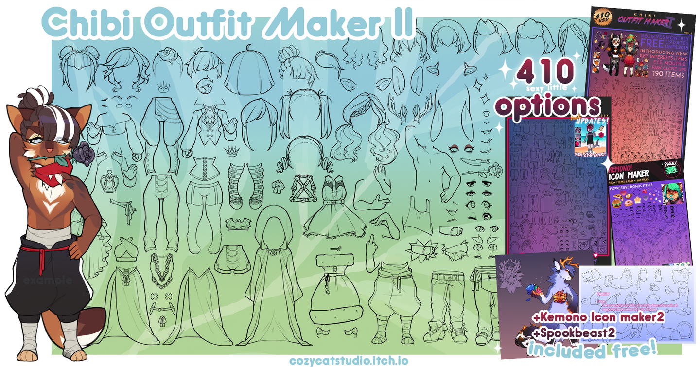 -up to 3 outfits (Chibi Outfit Maker, Chibi Girl, sugarbeans, $7 each)